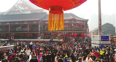 古文化街是春節期間津城人氣最旺、年味最濃的景區之一,一個個打著導游旗的旅游團隊及自駕游、自助游的散客融合在一起,形成涌動的人潮。沿街的糖畫、面塑、茶湯等各種攤位前圍滿了游客。古文化街7天客流量達92.2萬人次。天津市的另一民俗文化中心──西青區同樣人氣鼎盛。人們競相來到楊柳青古鎮、霍元甲老家,賞民俗看花燈、購年畫聽堂會,親身體會津沽特色明顯、鄉土氣息濃郁的“民俗年”。一些新型景區也融入了傳統文化元素,形成春節旅游市場新亮點。