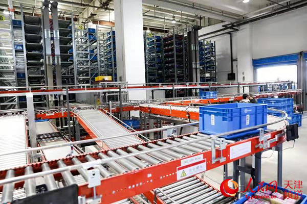 天津首個全自動化跨境電商倉在天津自貿區東疆片區投入使用。何沛霖/攝