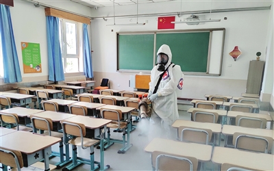 連日來,天津市各中小學開展復學前全面消殺工作,并以“實時消殺”、公共區域“一日一消殺”工作制加強校園防疫消毒及衛生保潔力度,確保校園的安全環境以迎接師生開學返校。