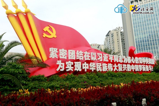 黨的十九大召開(kāi)在即,天津各主干道路、繁華街區(qū)花團(tuán)錦簇,一派祥和喜慶的氛圍。花卉景觀采用時(shí)令花草、綠植及草雕組合而成,結(jié)合十九大主題,構(gòu)建了美麗的整體效果的景觀,不僅為扮靚了街景,更展現(xiàn)了全市人民對(duì)十九大即將召開(kāi)的期盼。(記者戴濤 王欣鵬 張宏彬)
