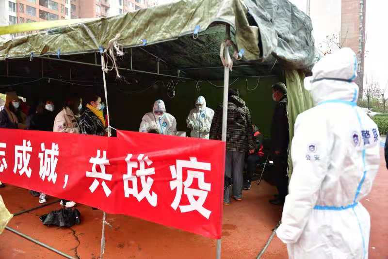 天津市濱海新區(qū)公安局公安干警引導(dǎo)居民有序排隊篩查(央廣網(wǎng)發(fā) 濱海新區(qū)公安局供圖)