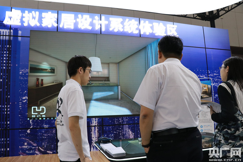 本屆智能大會智能科技展的展區面積從去年的6000平方米擴大到3.5萬平方米,設置了6個主題展區和“智能引領未來”智能科技周專題展區。在大會專門設置的未來城市和生活兩個智能體驗區,觀眾通過VR、AR技術來體驗未來的智慧城市,包括智能交通、 VR虛擬草原、 VR虛擬遼寧艦 、智慧養老 、航空虛擬體驗艙、 虛擬家居設計系統、AR地球儀和 AI機器人表演。多維度互動也為觀眾提供了“一試身手”的機會。圖為觀眾在ARTouch智能互動桌沉浸式體驗家居設計。 -