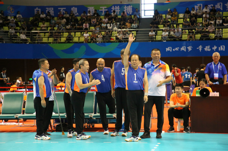 央廣網天津8月31日消息(記者劉陽)全國第十屆殘運會暨第七屆特奧會在天津順利召開,在坐式排球賽場上天津代表隊最年長男選手61歲俞根柱身著1號球服,在賽場上為榮譽揮灑汗水。