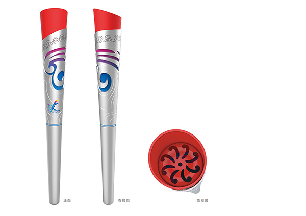 據(jù)第十三屆全運(yùn)會視覺設(shè)計(jì)工作室負(fù)責(zé)人、天津美術(shù)學(xué)院教授郭振山介紹,本屆全運(yùn)會火炬設(shè)計(jì)有以下兩個(gè)特點(diǎn):一是圖形元素內(nèi)涵豐富,采用了浪花的圖案展示出了天津的地方特征,同時(shí),動態(tài)的造型又蘊(yùn)含了巨大的力量,展示出運(yùn)動的內(nèi)涵,浪花與祥云的融合傳遞出了中國的概念,也傳遞出吉祥和諧盛會的內(nèi)涵;二是綜合材料工藝彰顯出時(shí)代的特征,火炬采用銀白色鏤空工藝及藍(lán)紫色漸變色的處理,賦予了火炬極強(qiáng)的時(shí)代氣息與特征。