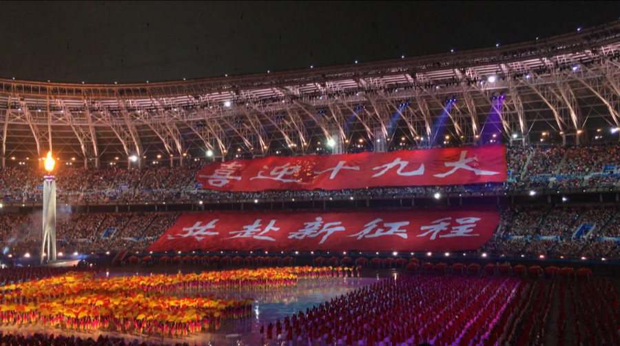 文體展演臨近結束時,主題歌《健康贏未來》激情唱響,觀眾席上出現“喜迎十九大,共赴新征程”的標語,中國紅的大紅燈籠隨著音樂的優美旋律震撼升起,全場歡騰。此外,在節目呈現上努力創新,在大型體育賽事開幕式上實現了視頻3D技術和節目內容的完美融合。