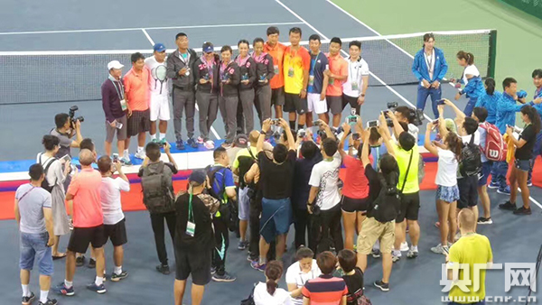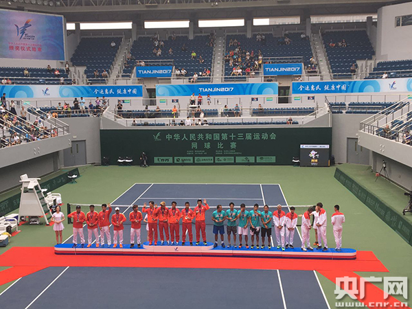 央廣網(wǎng)天津6月18日消息(記者 劉陽(yáng))6月18日,第十三屆全運(yùn)會(huì)網(wǎng)球團(tuán)體賽決賽在天津網(wǎng)球中心舉行。江蘇隊(duì)奪得男子組冠軍,天津隊(duì)奪得女子組冠軍。男子組最后決勝隊(duì)伍江蘇隊(duì)與浙江隊(duì)實(shí)力相近,最后以江蘇隊(duì)雙打配合優(yōu)勢(shì)險(xiǎn)勝浙江隊(duì)。而女子組團(tuán)體賽天津隊(duì)以?xún)擅麑?shí)力戰(zhàn)將張帥、彭帥,兩場(chǎng)單打以明顯優(yōu)勢(shì)奪得冠軍。