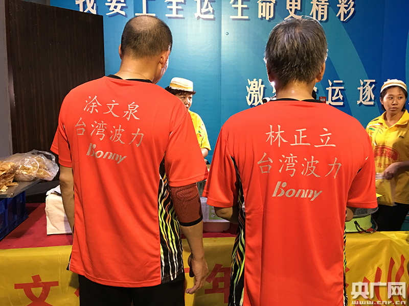 “快六十,年齡保密。”老涂嚼著天津煎餅果子說道,旁邊的老林則笑嘻嘻地打岔:“我們倆58、59歲!崩贤亢屠狭质侨\會群眾組比賽羽毛球隊臺灣隊的雙打運動員,剛剛參加完一輪比賽后,老涂和老林在比賽場館買了一套天津煎餅果子充饑。
