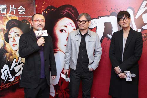 中廣網北京3月18日消息(記者 呂煒)日前,導演烏爾善執導的先鋒武俠喜劇片《刀見笑》已經在各大影院上映。之前,在北京金寶匯百麗宮影城舉行的嘉賓看片活動現場,演員徐崢夫婦、音樂人崔健、監制陳國富、演員陳坤等圈中人士走進影院觀看了影片。另外,烏爾善將執導由陳國富監制、陳坤、周迅主演的影片《畫皮2》,即將開拍。
