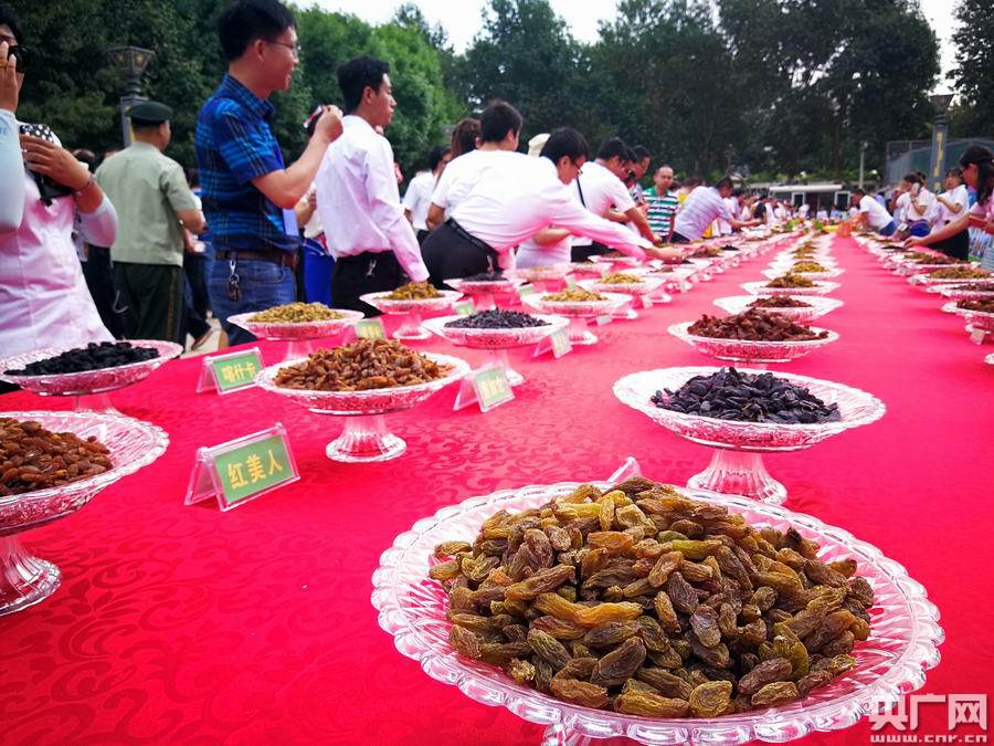 8月26日葡萄節(jié)開幕當(dāng)天,在世界上最甜蜜的街道—吐魯番葡萄長(zhǎng)廊舉辦了“無核白”“淑女紅”“火焰無核”等216個(gè)品種鮮食葡萄和葡萄干、葡萄酒和馕系列展示、品嘗活動(dòng),展出了“吐魯番紅葡萄”、“馬奶子”、“波爾萊特”7個(gè)品種果穗最大最小、果粒最大最小、最甜、風(fēng)味最獨(dú)特、口感最脆等多種特質(zhì)葡萄,讓各地游客觀眾大飽口福,大飽眼界,令人向往。