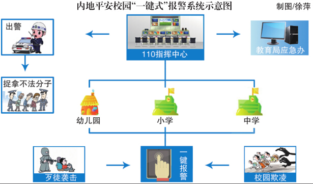 2014年10月,“一鍵式”報警系統(tǒng)在武漢市中小學(xué)、幼兒園推廣。