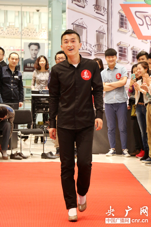 穿著高跟鞋走“貓步” 這小伙兒有點害羞 趙敏 攝