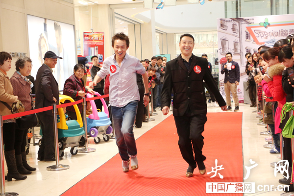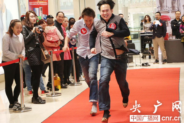 因為是第一次穿高跟鞋,男士們都覺得很好玩。超半數的男士表示,主要是為了陪女朋友過來,體驗一下女人穿高跟鞋的辛苦!拔疫@次真是親身體驗了一下刀鋒般的疼痛,不過活動很有意思,既愉悅了身心又鍛煉了身體!眳①愓咄跸壬f。