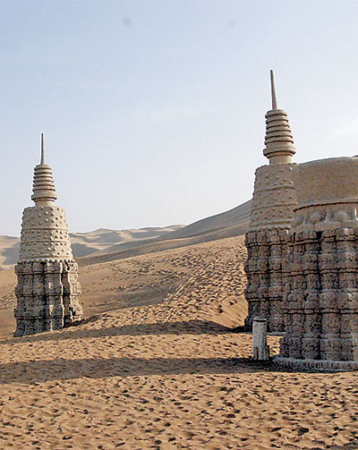 沙漠的南緣就是唐代連通沙州(敦煌)和西州(吐魯番)的古絲綢之路的另一通道——大海道。唐代文書稱:“大海道,右道出柳中縣(今鄯善縣魯克沁鎮)界,東南向沙州(敦煌)一千三百六十里。常流沙,人行迷誤。有泉井,咸苦,無草。行旅負水擔糧,履踐沙石,往來困弊。”因為環境艱苦、道路險遠,唐代稱庫姆塔格沙漠為“大患鬼魅磧”,大海道也因此而成為絲綢古道中最為神秘和艱辛的險途,至今仍吸引著無數勇敢的中外探險者。