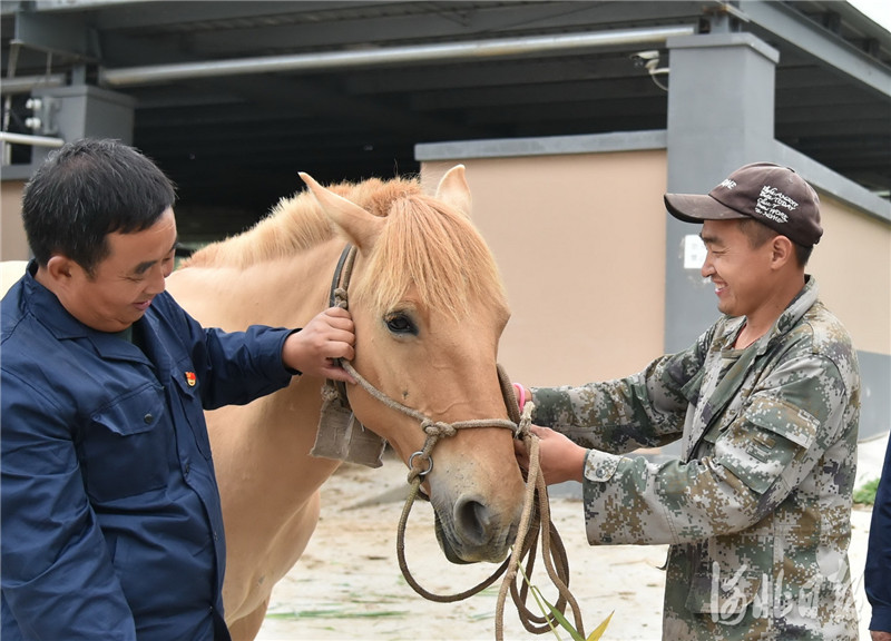 2020年7月10日,駐村第一書記、扶貧工作隊隊長梁建明(左)和村民一起查看馬匹。河北日報記者 趙海江 攝