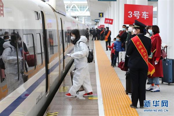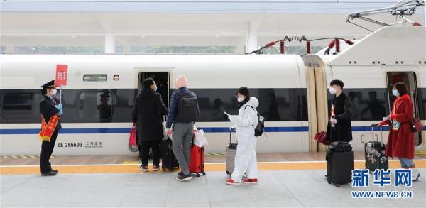 當(dāng)日,湖北省十堰市193名進(jìn)京務(wù)工人員乘坐G4834次復(fù)工專列從十堰東高鐵站出發(fā)。他們和從湖北省襄陽(yáng)市登上本次專列的一批復(fù)工人員抵達(dá)北京西站后,用人單位將用專車接回并隔離觀察14天后方可上崗務(wù)工。