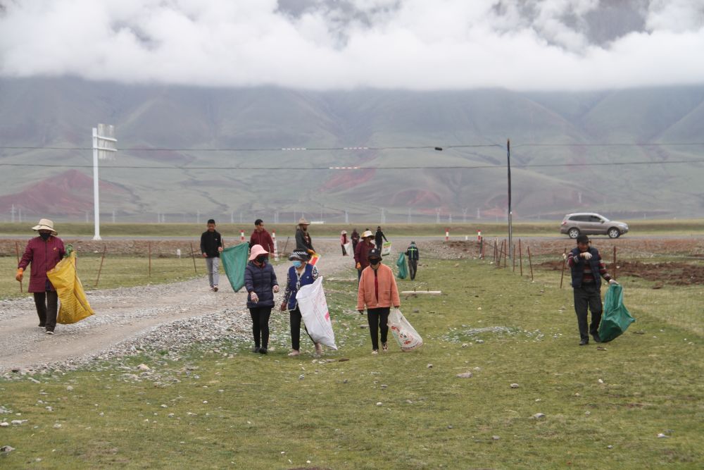 三江源國家公園治多生態環保協會的志愿者在撿拾垃圾(6月15日攝)。