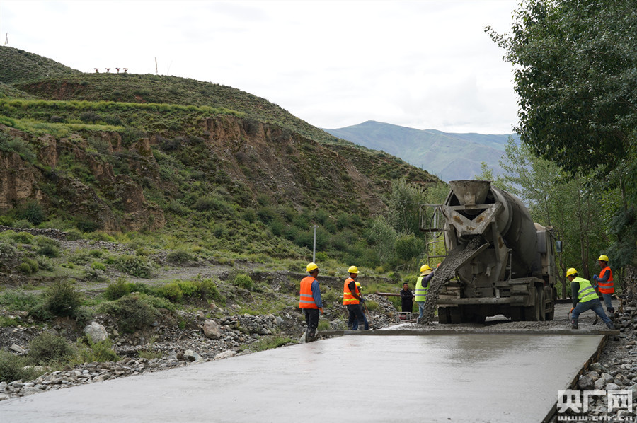 這條四級水泥路將改善當地共120戶的出行條件,施工聘用當地民工310名,日薪180元(央廣網發 王宇 攝)
