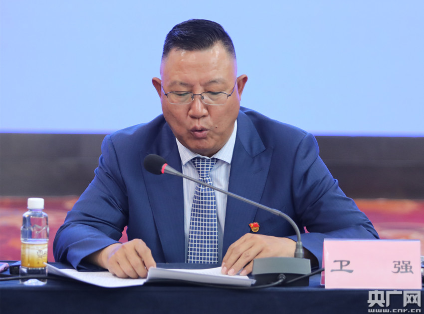 昌都市政府副市長 衛(wèi)強介紹70年來昌都經(jīng)濟社會發(fā)展情況(央廣網(wǎng)記者 普布次仁 攝)