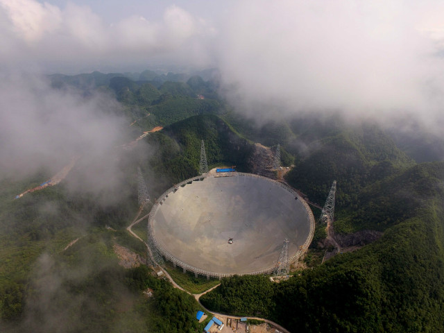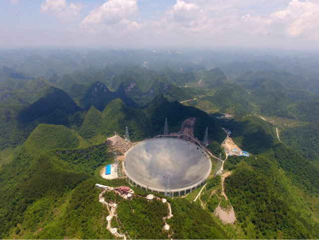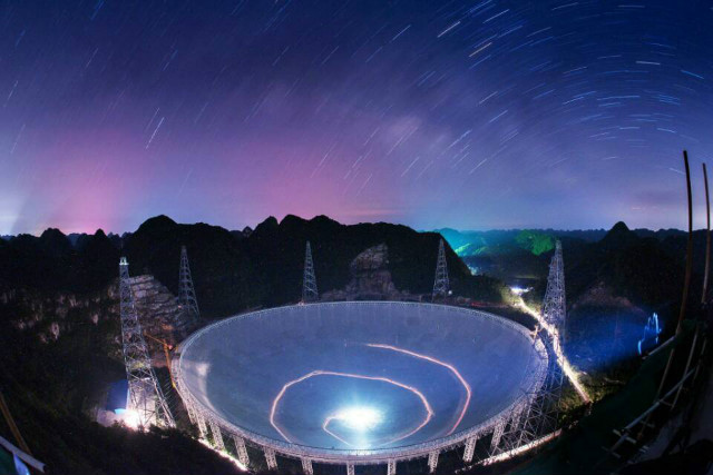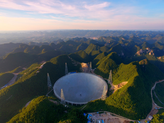 FAST總工藝師王啟明說,任何科學項目的建立都有其科學目標。FAST項目的科學目標排在最前列的是探索宇宙起源、尋找脈沖星,也包括地外文明的探索。FAST能接收到137億光年外的電磁波信號,這個距離接近宇宙邊緣。也就是說,如果銀河系內存在外星文明,他們的信息也很有可能被FAST發現。圖為FAST。攝影:代傳付