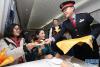 •      2月8日,乘務員在列車上為返鄉旅客送上春聯和新春的祝福。新華社記者 陳飛 攝