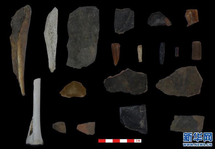 梅龍達普洞穴遺址發掘出土的部分遺物(2018年8月24日攝)。新華社發(西藏自治區文物保護研究所供圖)