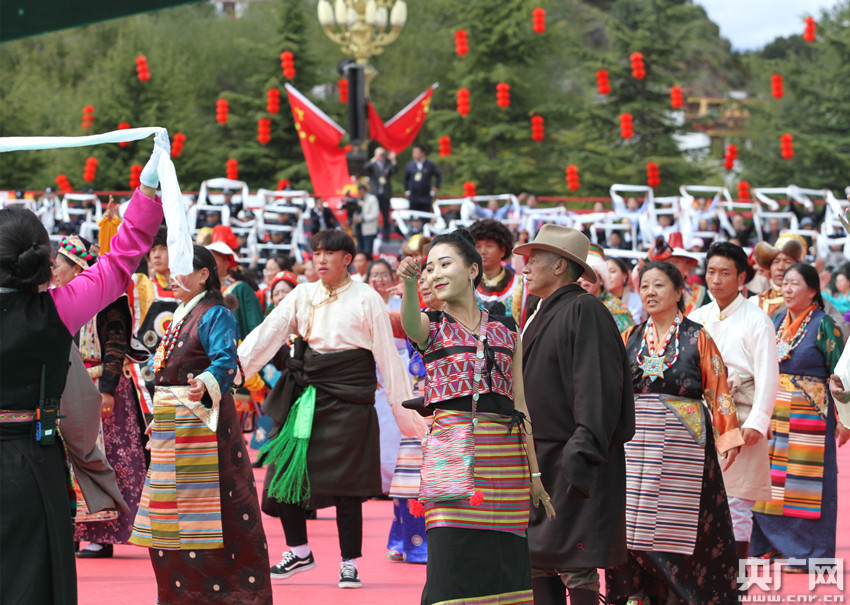 現場正在進行“千人鍋莊”活動(央廣網記者 普布次仁 攝)