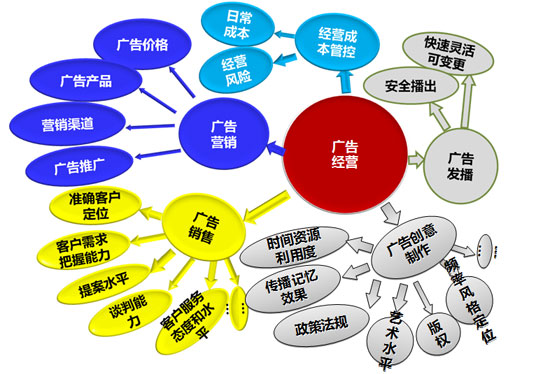 廣告經營不僅涉及廣告營銷,還包括對經營成本、廣告銷售多個環節、廣告創意上和廣告發播方面的綜合性的精細化管控。