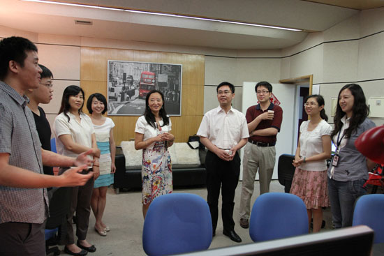 2012年6月8日,中央臺機關黨委副書記劉智力、團委書記王非在央廣傳媒發展總公司廣告分公司黨支部書記、常務副總經理周軍的陪同下,深入央廣廣告分公司,看望了正在緊張備戰2013年廣告預售工作的央廣廣告一線員工,并代表中央臺機關黨委、團委,將“青年文明號”獎牌、“青年崗位能手”證書頒發到一線員工手中。