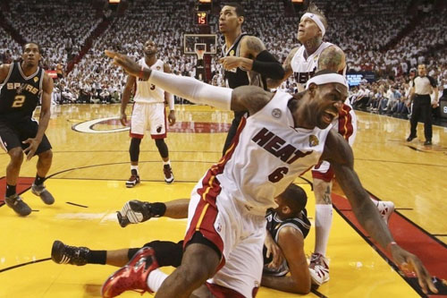 北京時間6月19日,雷-阿倫在常規時間結束前5.9秒投中一記三分,挽救了熱火,最終在加時以103-100擊敗馬刺,將總比分扳成3-3。勒布朗-詹姆斯打出三雙,貢獻32分、11次助攻和10個籃板。德維恩-韋德貢獻14分。蒂姆-鄧肯是前三節的功臣,為馬刺拿下了30分17個籃板,而托尼-帕克則在關鍵時刻發威,貢獻19分8次助攻,馬努-吉諾比利得了9分,但失誤8次。