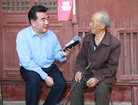 中央臺“走轉改”傾聽貴州大型采訪活動啟動,圖為記者王求向當地村民陳貴忠一家了解情況。(中廣網記者 涂傲/攝)