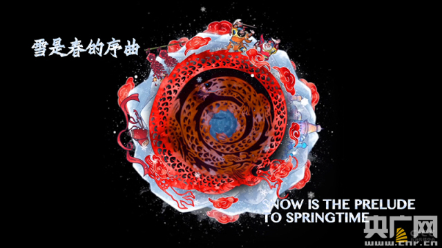 《樂享春節(jié)》以手繪年畫、中國民族舞蹈與三維投影技術(shù)相結(jié)合的表現(xiàn)形式,通過舞蹈演員與中國版圖互動(dòng),展現(xiàn)發(fā)生在中國廣袤大地上豐富多彩的文化民俗和喜慶祥和的春節(jié)圖景。