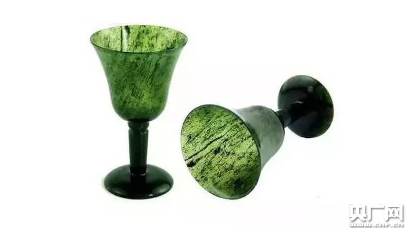 據傳,夜光杯最早是用乳白的羊脂玉制作而成。后來這種杯子深受大家喜愛,可羊脂玉太稀少精貴,于是,墨綠色、晶瑩潤澤的祁連玉,成了后來更多人見到的夜光杯的主要材質。