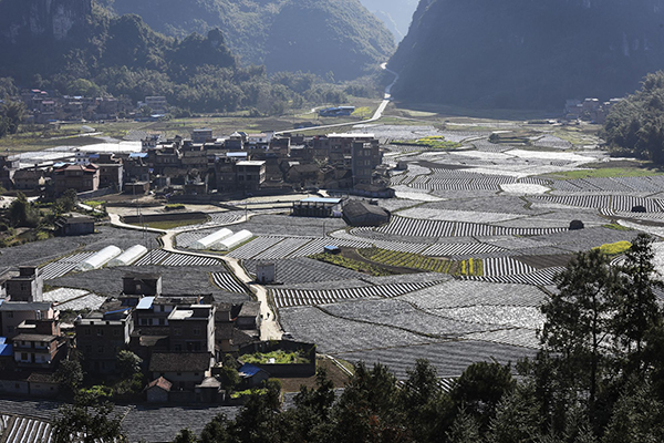 這是2月28日在廣西羅城縣喬善鄉板團村拍攝的田園景色。