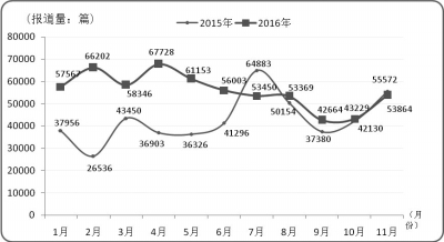 附:2015-2016年1-11月涉農新聞輿情對比圖