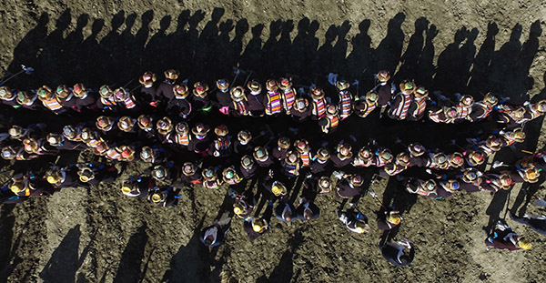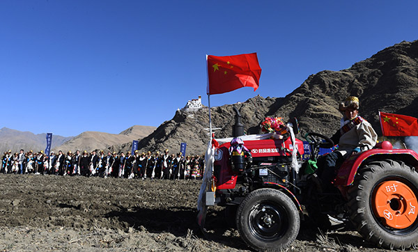 當(dāng)日是藏歷的正月十九,西藏各地迎來(lái)“開耕節(jié)”。西藏山南市乃東區(qū)昌珠鎮(zhèn)門中崗村的上百位村民身著盛裝,載歌載舞,在西藏第一塊農(nóng)田,上演一場(chǎng)傳承千年的春耕儀式。