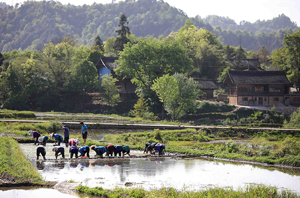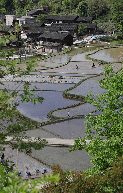 4月22日,貴州省丹寨縣興仁鎮城望村的村民在春耕。