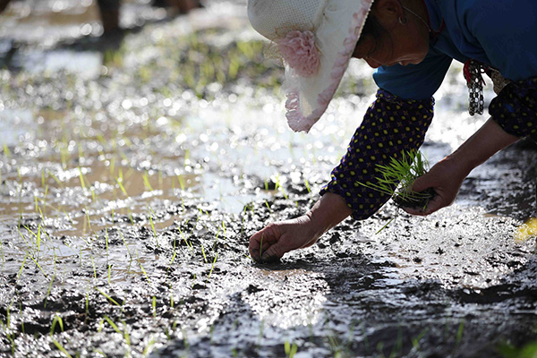 4月22日,貴州省丹寨縣興仁鎮城望村的村民在水田里育秧。