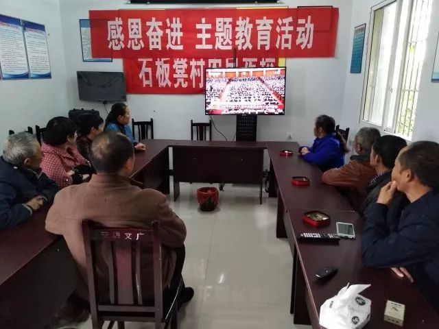 四川省遂寧市安居區聚賢鎮石板凳村黨員在村會議室收看。(攝影:中國鄉村之聲農民觀察員徐素梅)