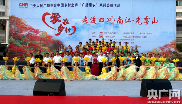 央廣網(wǎng)北京10月22日消息 據(jù)中國(guó)鄉(xiāng)村之聲報(bào)道,10月21日,中央人民廣播電臺(tái)中國(guó)鄉(xiāng)村之聲“廣播惠農(nóng)·愛在鄉(xiāng)村”公益活動(dòng)走進(jìn)四川省南江縣,除虹云、于乃久、李進(jìn)等全國(guó)著名的演藝界明星為現(xiàn)場(chǎng)近萬名群眾送去文化大餐外,來自北京的權(quán)威醫(yī)療、畜牧業(yè)、茶葉專家也為農(nóng)民朋友送去醫(yī)療農(nóng)技服務(wù)。活動(dòng)中,中央人民廣播電臺(tái)副總編輯史敏為南江縣“廣播惠農(nóng)”工程示范縣、“愛在鄉(xiāng)村”示范點(diǎn)授牌。中央人民廣播電臺(tái)副總編輯史敏、南江縣縣委書記劉凱、中央人民廣播電臺(tái)四川記者站站長(zhǎng)劉長(zhǎng)江、中央人民廣播電臺(tái)社教節(jié)目中心副主任陶煒參與活動(dòng)。