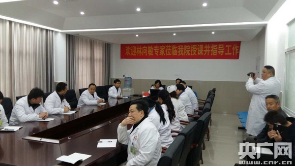 來自首都醫科大學附屬朝陽醫院心臟中心副主任醫師林向敏和三伏潭鎮中心醫院的醫生們進行互動交流