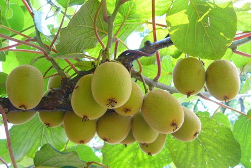 眼下正是上虞產章鎮獼猴桃集中上市的時節,記者來到了位于章鎮新南村的紫塘山獼猴桃基地。從我所站的這個位置望過去,滿眼都是累累的果實。據了解,這百畝獼猴桃基地在五年前還是一片桑園,當時由于蠶繭價格的持續低迷,當地農民放棄蠶桑開始了經濟效益更為明顯的紅心獼猴桃種植。讓紫塘山農戶感到驚喜的是,這里種出來的獼猴桃口感出奇的好,與平原地區種植的獼猴桃相比甜度也是明顯高出很多。這里種植的紅心獼猴桃果實呈圓柱形,平均單果重70-80g,最大單果重125g,果皮褐綠色,果面光滑無毛。果實近中央部分中軸周圍呈艷麗的紅色,果實橫切面呈放射狀彩色圖案,果肉細嫩,汁多,風味濃甜。鮮果中有人體必需的17種氨基酸和維C、B、E和鉀、鈣、鎂、磷等礦物質。紅心獼猴桃最優秀的特征之一是維C含量十分豐富,是蘋果的20-80倍。每天吃1-2個紅心獼猴桃即能滿足人體對維C和微量元素的需要。