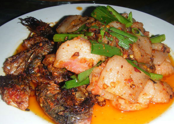 酸扎魚是印江特色美食之一,把魚洗凈拌上糯米粉和紅辣椒放到壇子里腌10天半個月。要吃的時候,就把腌成的魚從壇子里取出,放上姜、蔥,用茶油或菜油煎,絕對是一道酸辣醇香的風味菜。