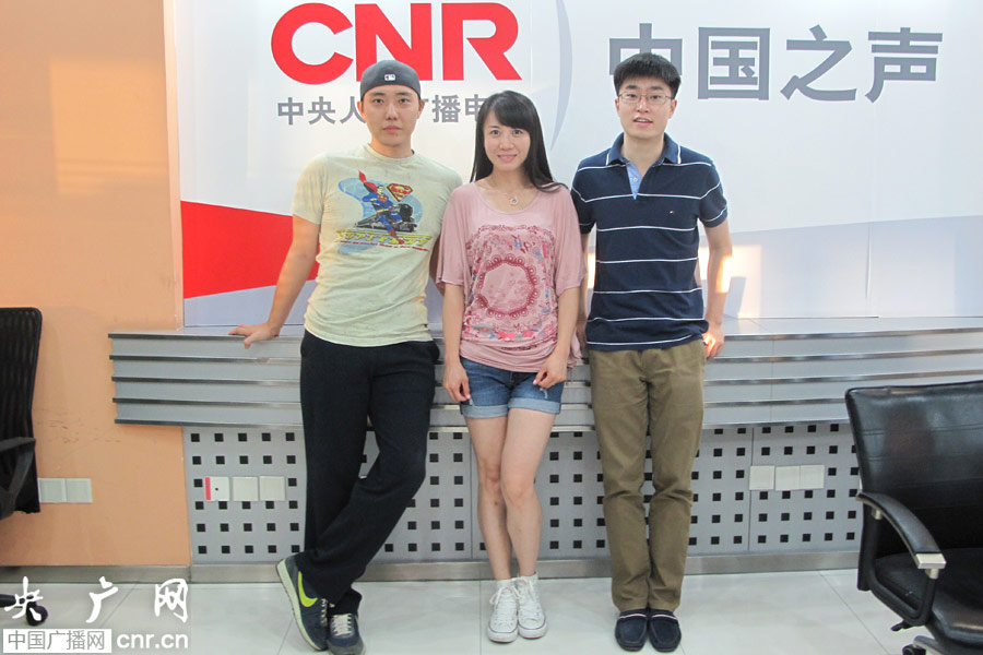 本期《中國大舞臺》主持人楊昶、節目策劃張藝齡與嘉賓中國愛樂樂團周皓合影