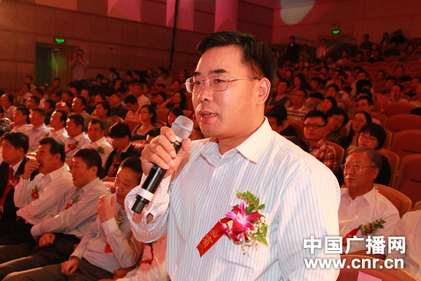 中央人民廣播電臺中國鄉村之聲開播儀式今日在北京舉行,圖為中化化肥有限公司總經理馮志斌在開幕儀式現場接受采訪。
