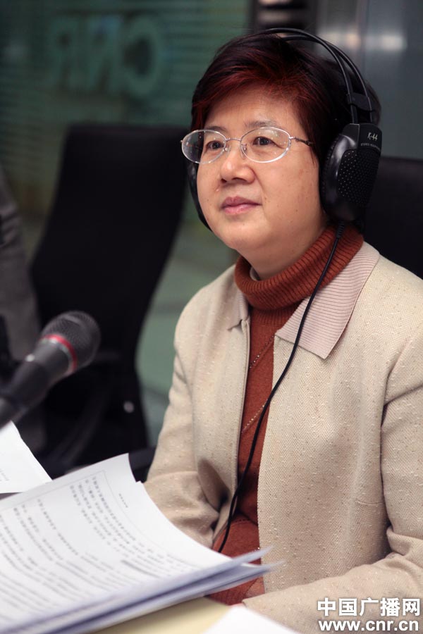 中央戲劇學院副院長廖向紅做客《中國大舞臺》直播間(中廣網 李雪南攝)