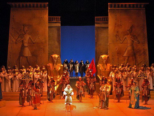 《阿依達》描寫了交戰(zhàn)國雙方皇帝的女兒在她們同時深愛著的一位戀人之間所作的生死選擇的故事:古埃及法老王時代,東非大陸的埃及和埃塞俄比亞戰(zhàn)事又起,埃及王手下戰(zhàn)將拉達梅斯率部出征,迎戰(zhàn)埃塞俄比亞國王阿姆納斯洛。此時,埃及王女兒阿姆涅麗斯公主愛戀著拉達梅斯,而拉達梅斯的心上人卻是阿姆涅麗斯的女奴阿依達。而這位女奴不是別人,正是埃塞俄比亞國王的女兒—原來阿依達也是一位公主。