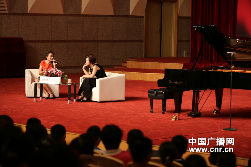 鋼琴家陳薩接受主持人采訪。(中廣網(wǎng)記者張曈攝)