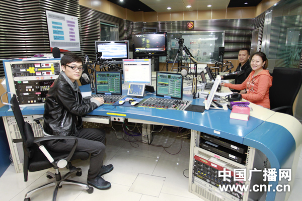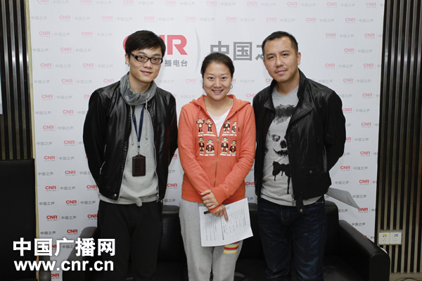 胡凡、章瑩瑩、田龍?jiān)凇吨袊笪枧_》節(jié)目直播中