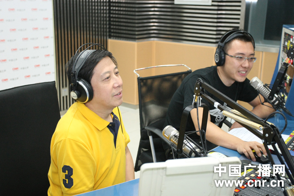 中國廣播藝術團著名歌唱家魏金棟(左)與主持人楊昶(右)(中廣網記者陳江南_攝)
