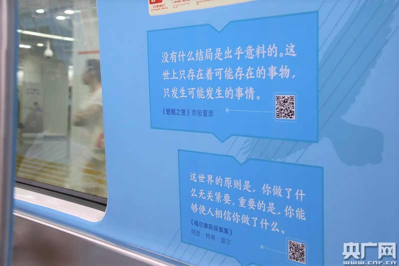 央廣網杭州8月8日消息(記者傅煒如)最近如果你搭乘杭州地鐵2號線,也許會遇見一輛文藝的列車,六節不同顏色的車廂內,摘錄著國內外名著的經典選段,就像一本絢麗的立體書籍,讓你置身于書的世界……